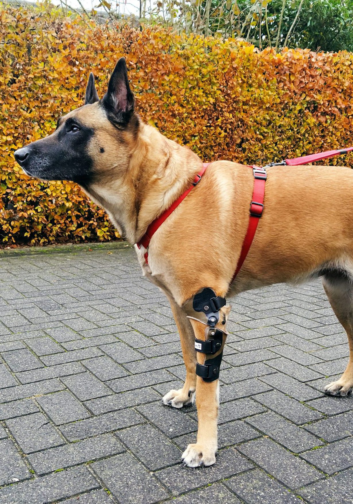 Een brace/spalk voor dieren wordt vaak ingezet wanneer een dier een probleem ondervindt aan een (of meerdere) gewricht(en). Dit kan zijn door artrose, een peesletsel, botbreuk, misvorming etc. Wanneer hier geen operatie voor mogelijk –of gewenst is kan een hulpmiddel perfect een oplossing bieden! Door een gewricht te ondersteunen kan het dier weer (gecontroleerd) bewegen waardoor de mobiliteit verbetert en pijn vermindert.De braces zijn zowel in beweegbare (dynamische) als onbeweegbare (statische) uitvoeringen te maken.
