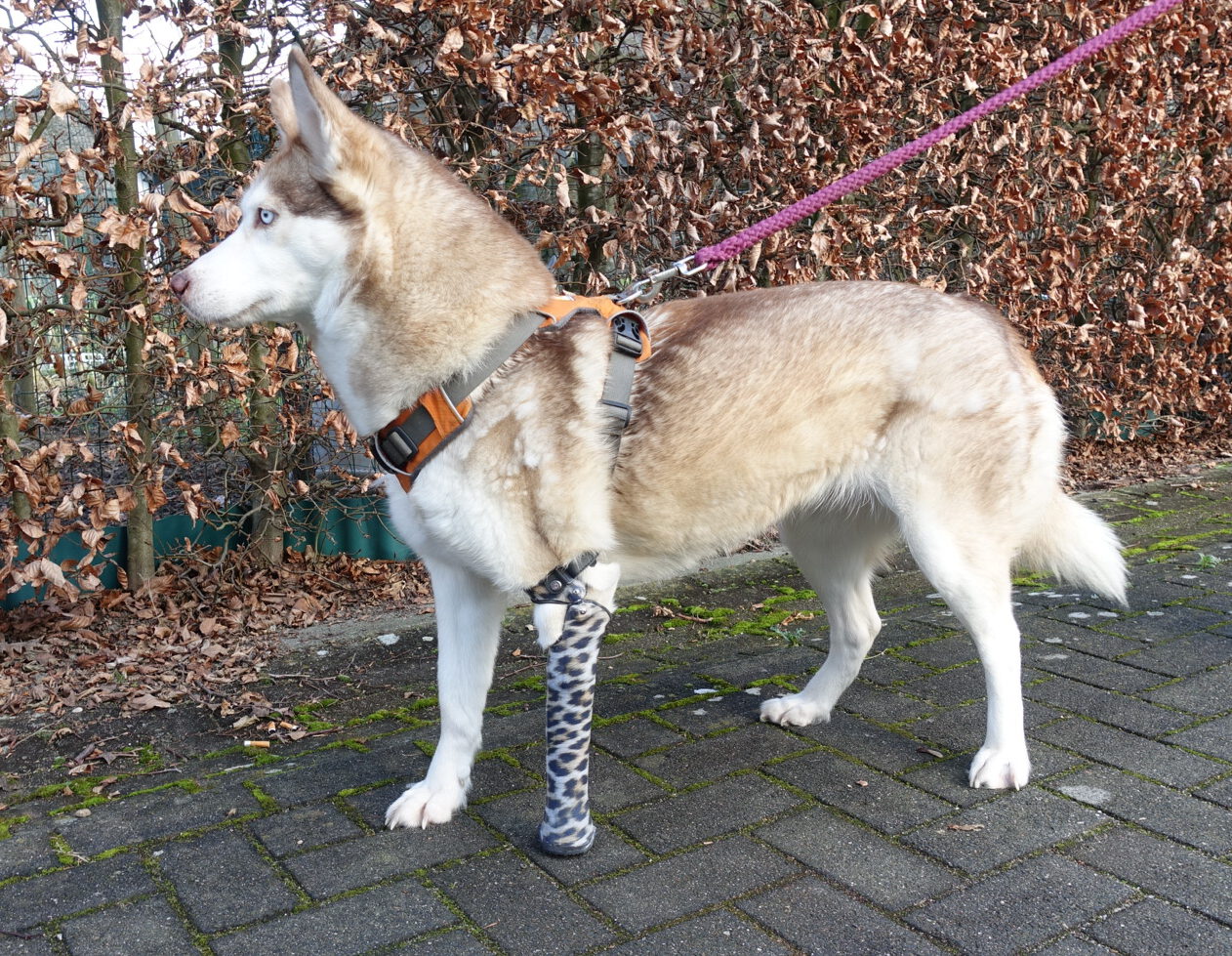 De foto’s liegen niet: wat een geluk dat Bella goed terecht is gekomen. Zo goed zelfs dat ze het allerbeste voor haar willen. Als een echte husky wilt ze rennen en actief zijn. Helaas zit dat er nu niet in voor Bella. Haar vriendjes kan ze eigenlijk niet meer bijhouden, wat haar enorm frustreert. Soms loopt ze op haar stomp om toch die snelheid te kunnen pakken, maar dan gaat haar stompje open..