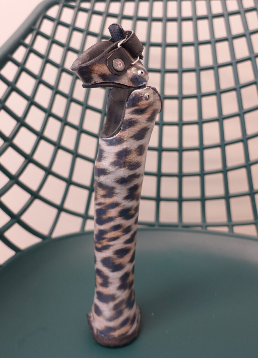 Het passen en afleveren van de prothese ging haar zeer goed af. Ze steunde direct al op haar ‘nieuwe poot’. Wel is het lopen nog wennen, maar met rust en opbouw moet dat helemaal goed komen!